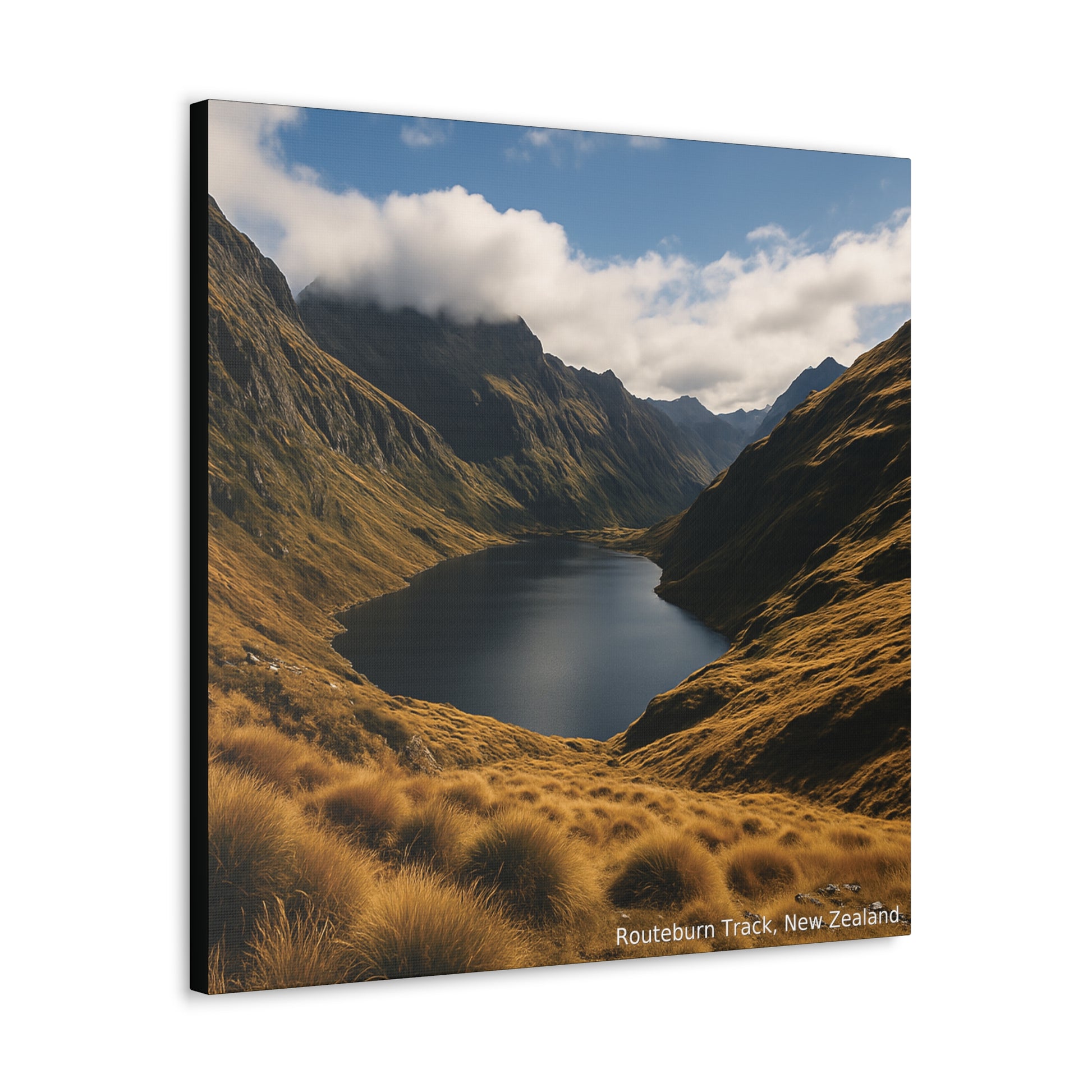 Golden tussock rolls down to a deep alpine lake beneath serrated peaks on the Routeburn Track, where Fiordland meets Mount Aspiring. Clear light, drifting cloud and glacier-cut valleys create a classic South Island panorama. Printed with rich archival inks on gallery-wrapped canvas, this piece captures the crisp, high-country atmosphere of the Routeburn Track – New Zealand Great Walks, ready to be the statement landscape on your wall.
